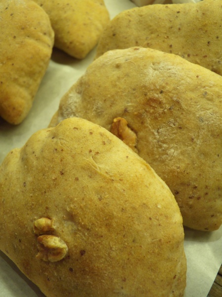 胚芽食パン生地で具を包んだ小さめサイズの惣菜系のパンです。